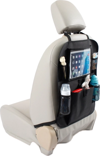Udělejte si pořádek v autě a zabavte děti na cestách s praktickým organizérem PETITE&MARS. Nabízí kapsu na tablet až 11,5″ s ochranou displeje a perfektní viditelností, rychlou instalaci pomocí popruhů a mnoho úložných kapes na hračky, láhve, občerstvení i knížky.