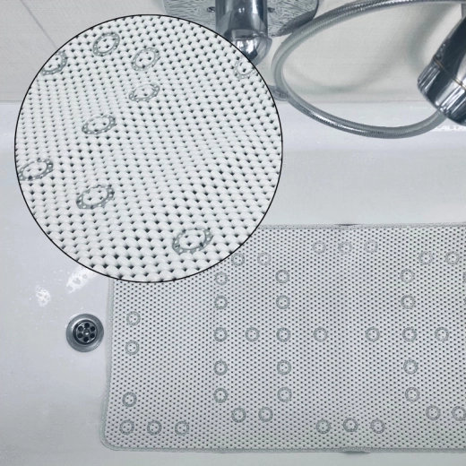 Desítky přísavek na rubu a texturovaný povrch s perforací zajišťují pevné přilnutí a spolehlivou ochranu proti uklouznutí.