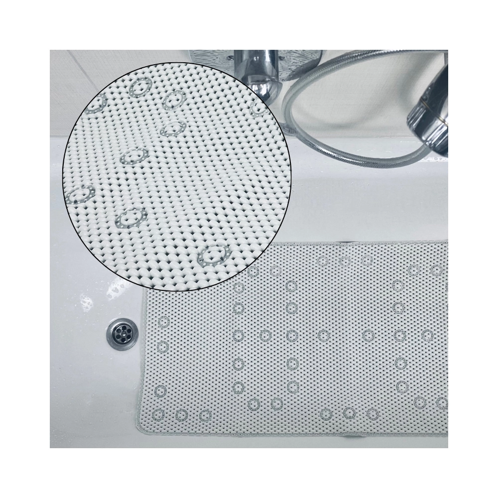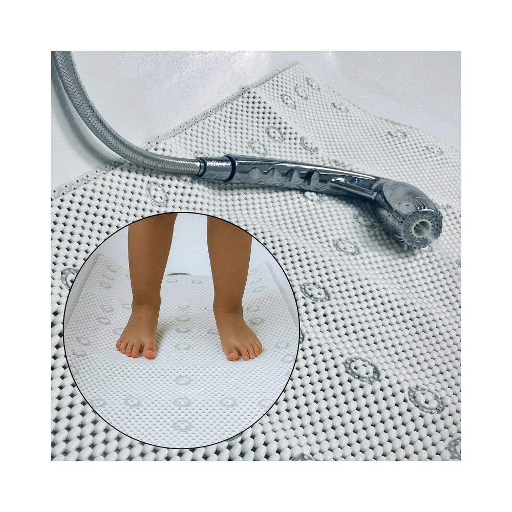 Díky materiálu 100% PVC je podložka velmi lehká, odolná a rychleschnoucí. Instalace je jednoduchá: položte ji na vlhký povrch, pritlačte na všechny přísavky a ujistěte se, že je dokonale vyrovnaná. Snadná údržba a univerzální design z ní dělají praktický doplněk každé domácnosti.