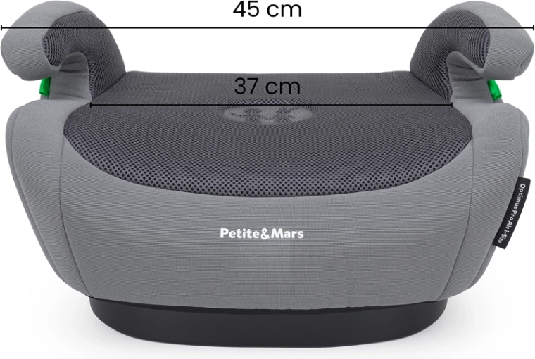 Podsedák PETITE&MARS Optimus Pro i-Size Grey Air je spolehlivé řešení pro starší děti, které již používají tříbodový pás vozidla. Díky pevnému ukotvení ISOFIX z nerezové oceli zůstává stabilní i při prudkém brzdění a pomáhá správně nastavit výšku sezení pro bezpečné vedení pásu.