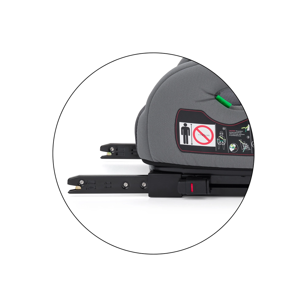 Integrované ISOFIX konektory zajišťují pevnou a rychlou instalaci, která zabraňuje posunu podsedáku a zvyšuje bezpečnost při brzdění.