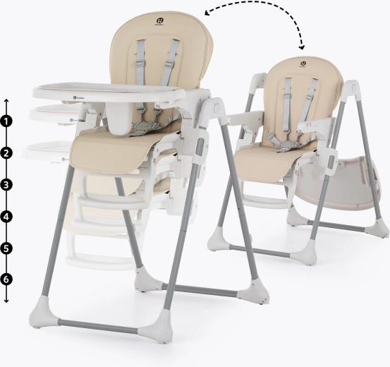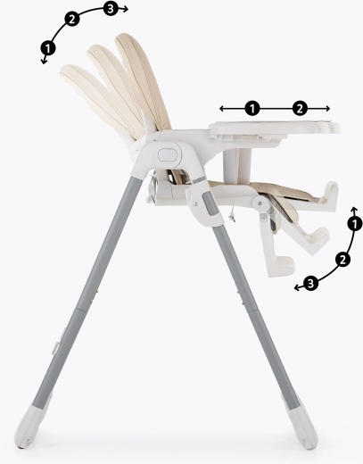 Dvě polohy nastavení přiblíží podnos k dítěti tak, aby mělo vše pohodlně na dosah a sedělo stabilně.