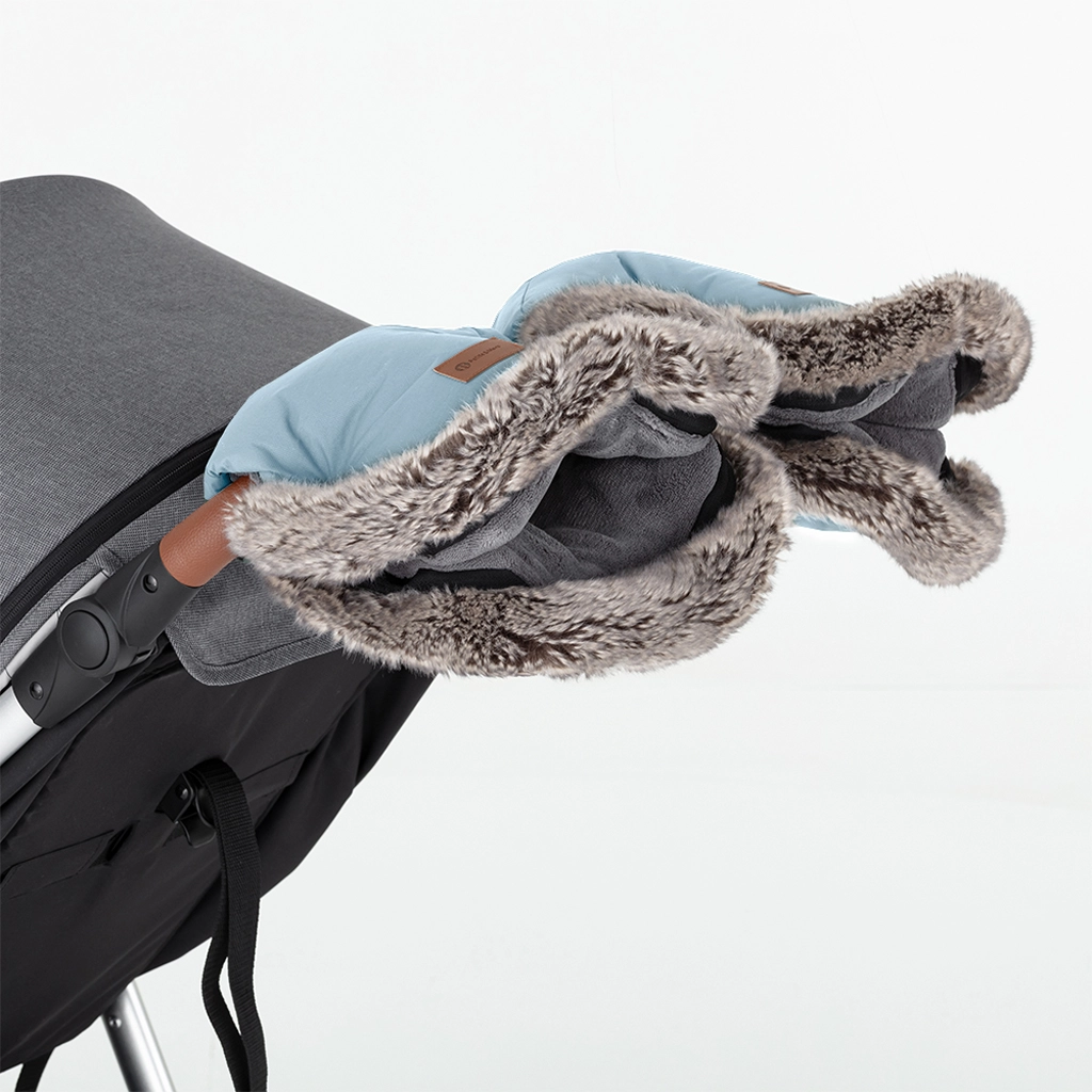 Dva samostatné díly umožňují rychlé a pevné připevnění k jakémukoli typu kočárku – ať už s kontinuální rukojetí nebo dvěma madly. Čtyři robustní druky drží rukavice bezpečně na místě a univerzální velikost pohodlně sedí i na větší ruce. Údržba je snadná: stačí vyprat v pračce na 30 °C.