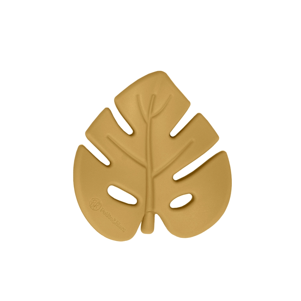 Krátká lžička a vidlička s měkkými hranami pro bezpečné učení samostatného jedení. Kousátko ve tvaru listu masíruje dásně a lze ho chladit.