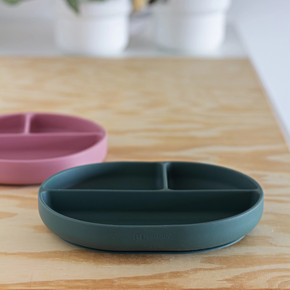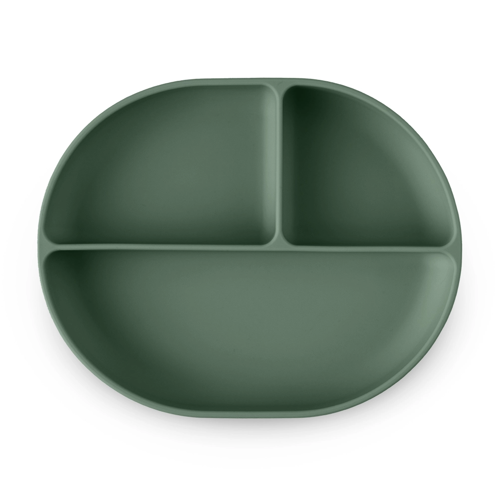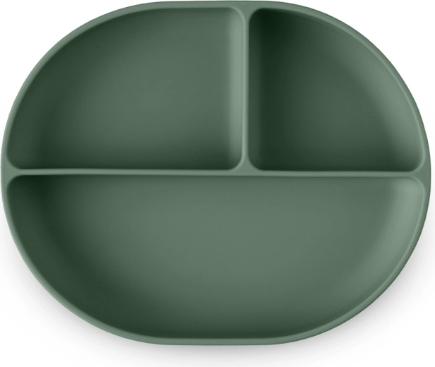 Silikonový oválný dělený talíř s přísavkou PETITE&MARS Take&Match Misty Green 6m+