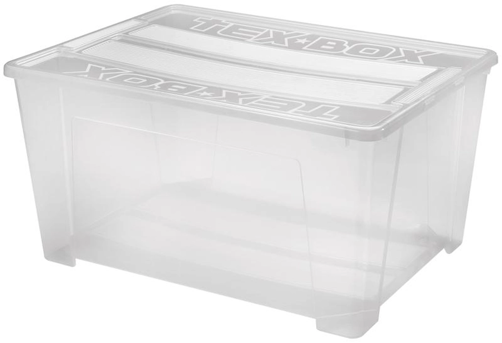 Velkokapacitní plastový úložný box HEIDRUN TexBox o objemu 150 litrů s praktickým víkem a transparentním tělem pro rychlý přehled o obsahu. Ideální pro bezpečné uložení oblečení, hraček, peřin i sezónních věcí doma, v dílně či garáži – chrání před prachem, nečistotami, vlhkostí a poškozením.