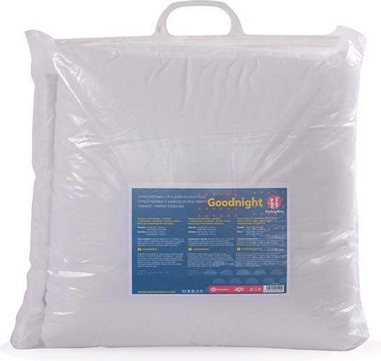 Sada výplní do postýlky Goodnight od Petite&Mars přináší dětem klidný spánek po celý rok. Přikrývka a polštář jsou lehké, měkoučké a dobře drží tvar. Bavlněný potah je příjemný na dotek, zatímco duté vlákno uvnitř zajišťuje vzdušnost, snadnou údržbu a antialergické vlastnosti.