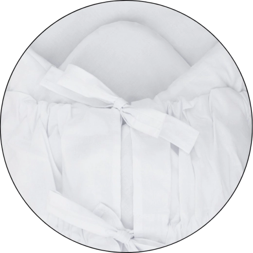 Potah ze 100% jemné bavlny je šetrný k citlivé pokožce a zajišťuje příjemné teplo. Zavinování na stužky umožňuje snadné a pevné utažení pro pocit bezpečí „jako u maminky v bříšku“. Před praním vždy vyjměte kokosovou vložku.