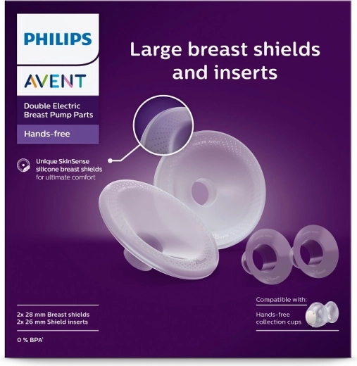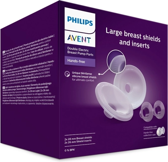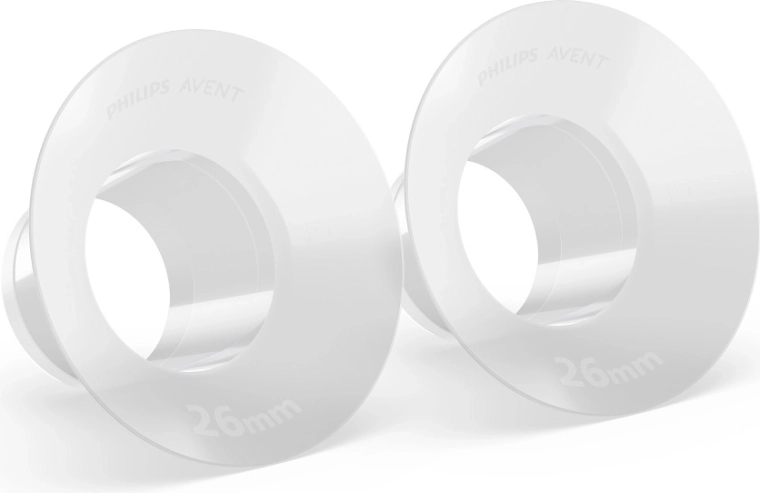 Díky promyšlené konstrukci z několika málo částí je čištění a sestavení rychlé a intuitivní. Různé velikosti komponent (nástavce 28 mm a vložky 26 mm) poskytují přesnější přizpůsobení pro větší velikosti bradavek a prsou, což zvyšuje pohodlí i účinnost odsávání. Používejte výhradně se sběrnými nádobkami Philips AVENT v režimu hands-free.