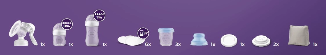 Startovací sada PHILIPS AVENT přináší vše, co maminka potřebuje pro začátek kojení a odsávání. Manuální odsávačka s měkkou silikonovou vložkou jemně masíruje prso a pomáhá přirozeně spouštět tok mléka. Díky kompaktní konstrukci a ergonomické rukojeti je odsávání rychlé, tiché a snadno ovladatelné – kdykoli a kdekoli.