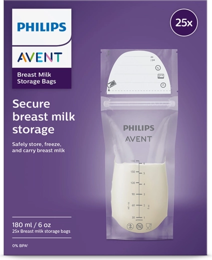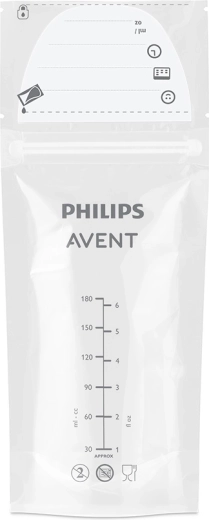 Praktické sáčky Philips AVENT pro bezpečné uchování mateřského mléka o objemu 180 ml v balení 25 ks. Jsou předsterilizované, mají dvojitý zip proti vytečení, zesílené švy a dvojitou vrstvu materiálu pro spolehlivé skladování v chladničce i mrazničce. Díky širokému otvoru se snadno plní a nalévají a díky pevnému provedení samy stojí. Materiál je bez BPA a sáčky lze pro úsporu místa ukládat naplocho.