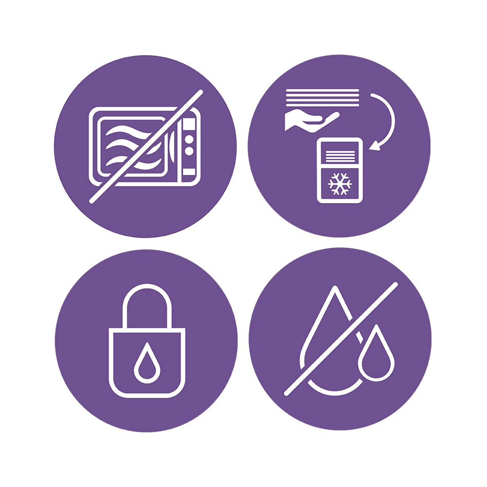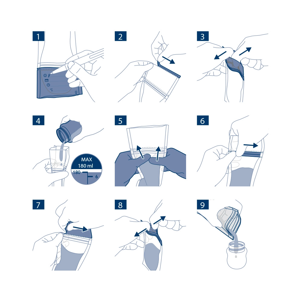 Pro maximální praktičnost sáčky samy stojí a při skladování je lze uložit naplocho, čímž šetří místo v chladničce i mrazničce. Materiál bez BPA splňuje přísné hygienické nároky. Ideální volba pro maminky, které chtějí bezpečně odsávat, plnit, skladovat a podávat mateřské mléko.