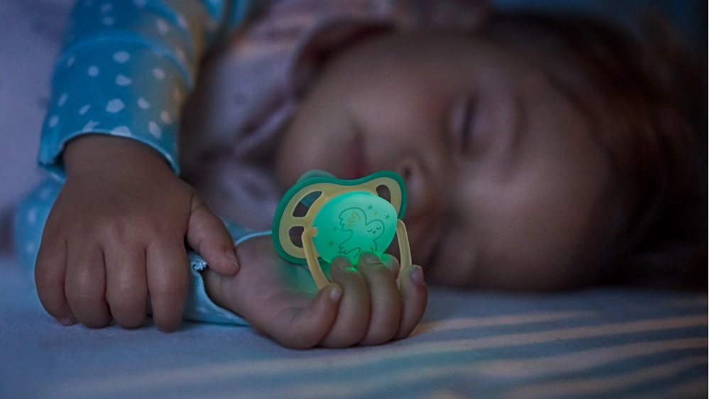 Světélkující střed šidítka umožňuje rychle jej najít i v noci, takže nerušíte spánek miminka ani svůj.
