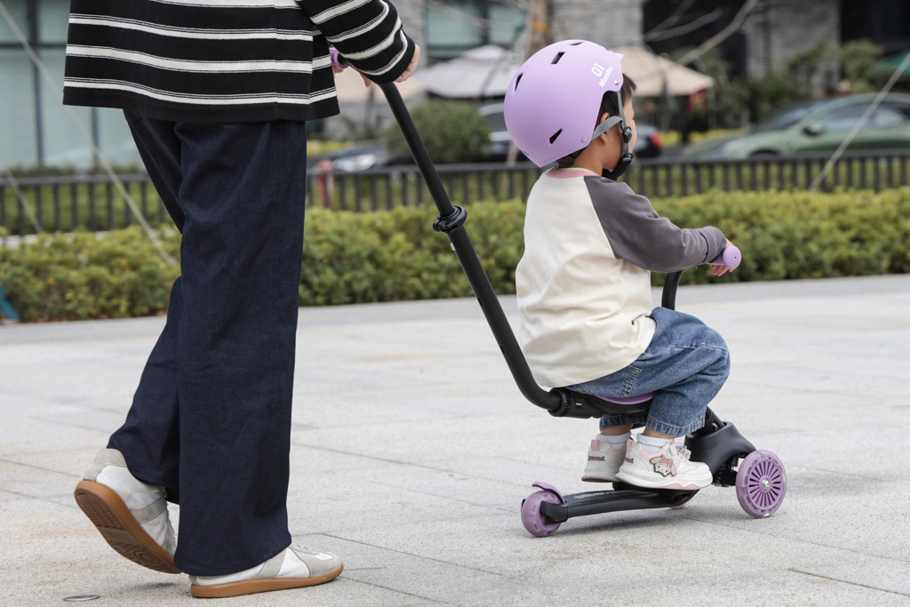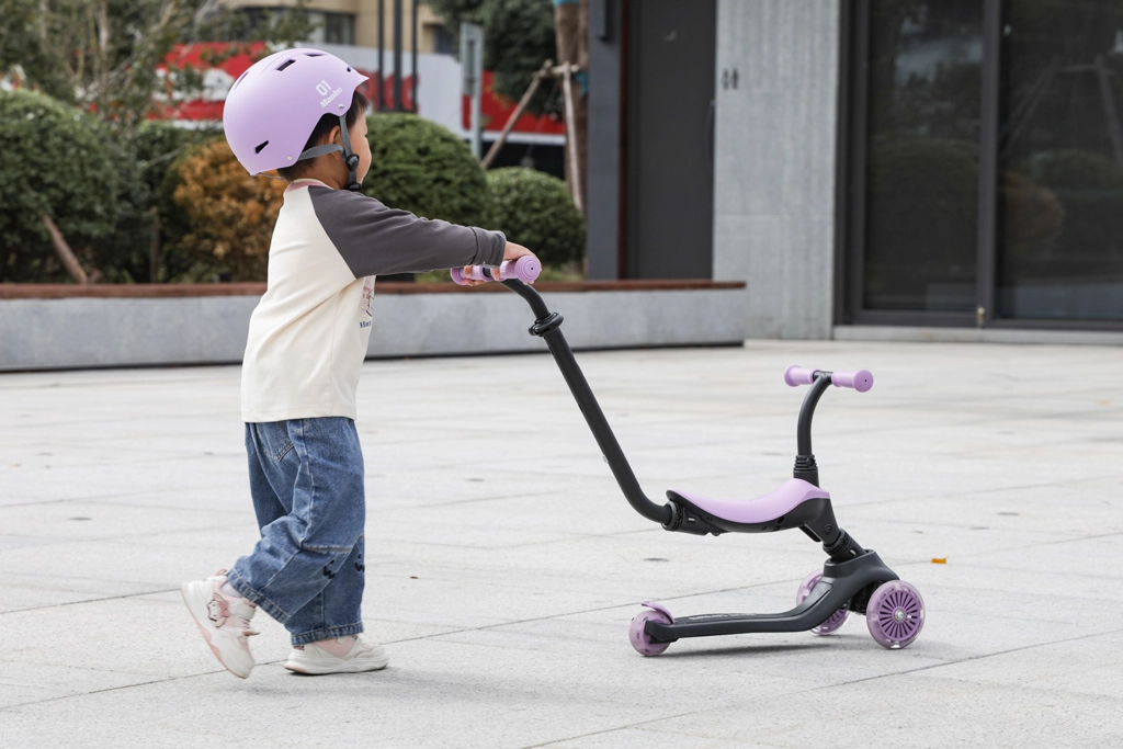 - 3v1 – jízda vsedě, s rodičovskou asistencí, samostatná koloběžka.