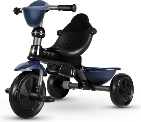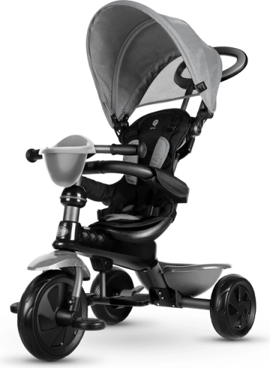 Tříkolka se vyvíjí ve 4 krocích: od plně ovládaného režimu rodičem až po samostatnou jízdu s pedály. Odnímatelné díly (opěrka zad, rodičovská rukojeť, opěrky/pedály) umožní ideální nastavení pro každou fázi růstu. Praktický přední košík na láhev a zadní koš poskytnou prostor na hračky a drobnosti, zadní nožní brzda zajistí bezpečné parkování.
