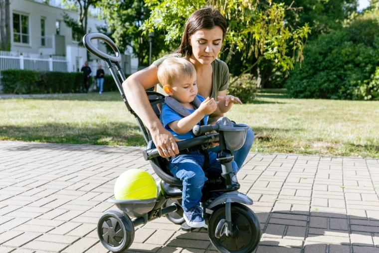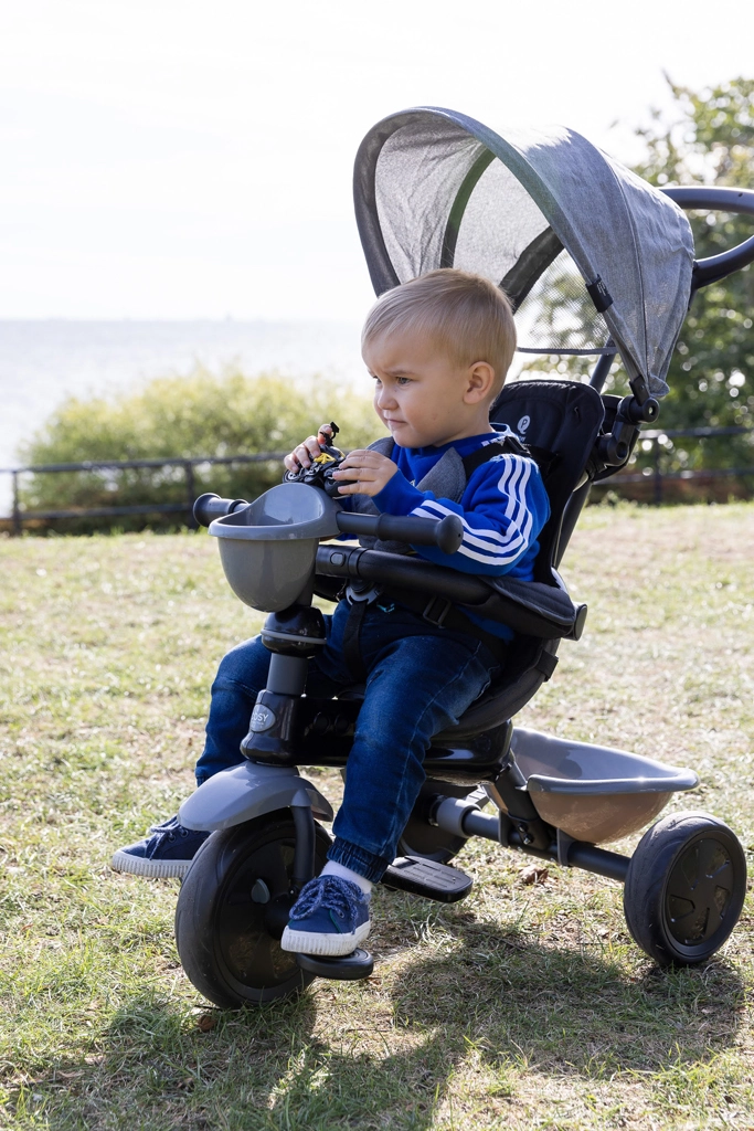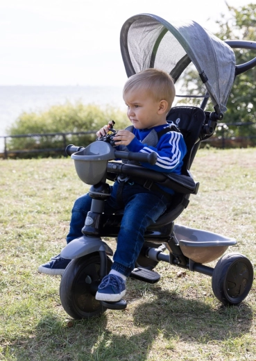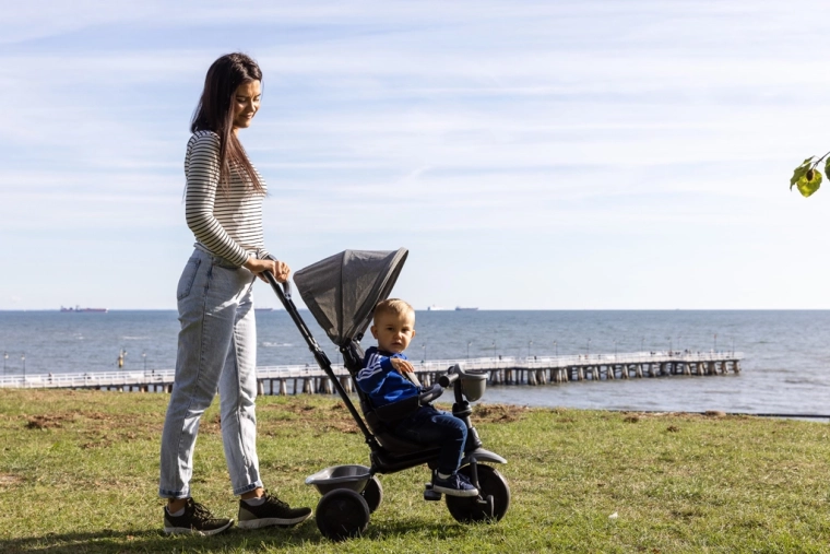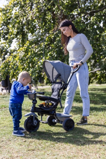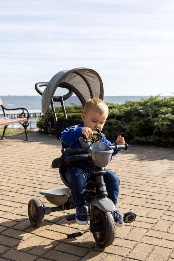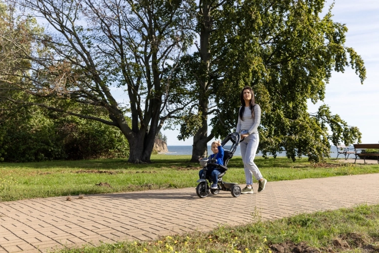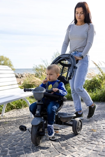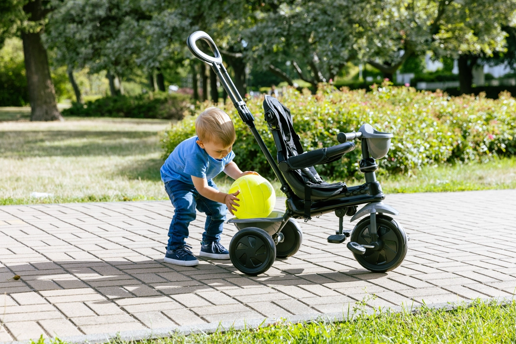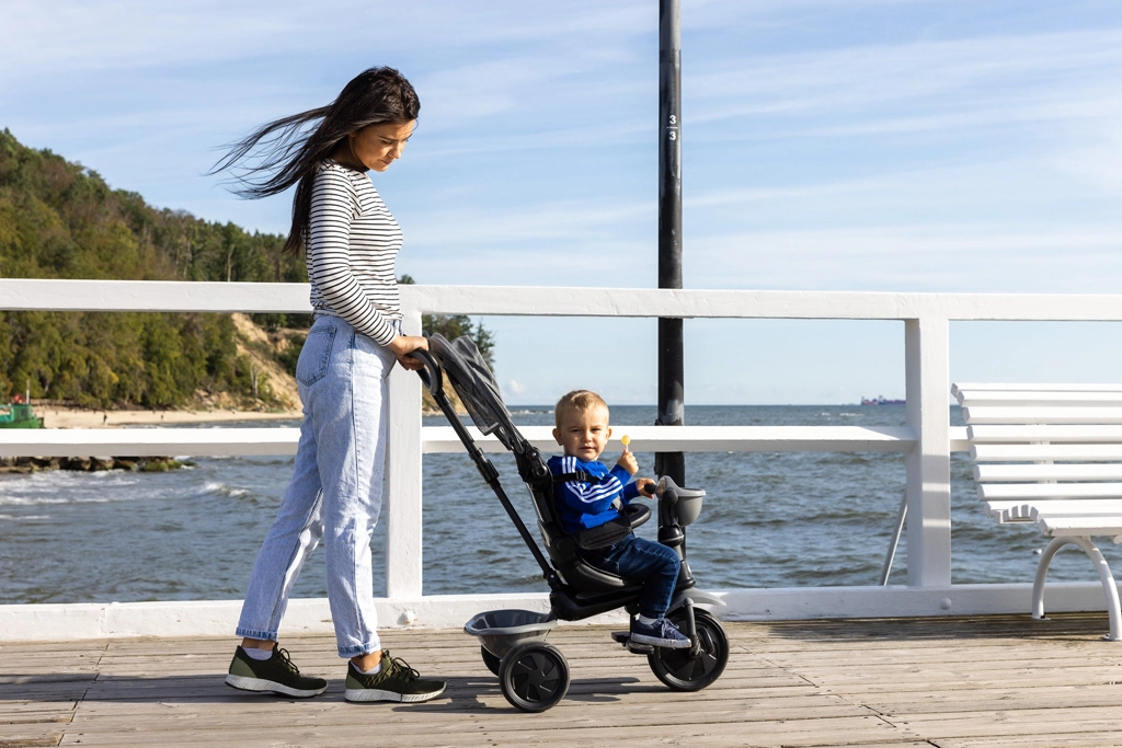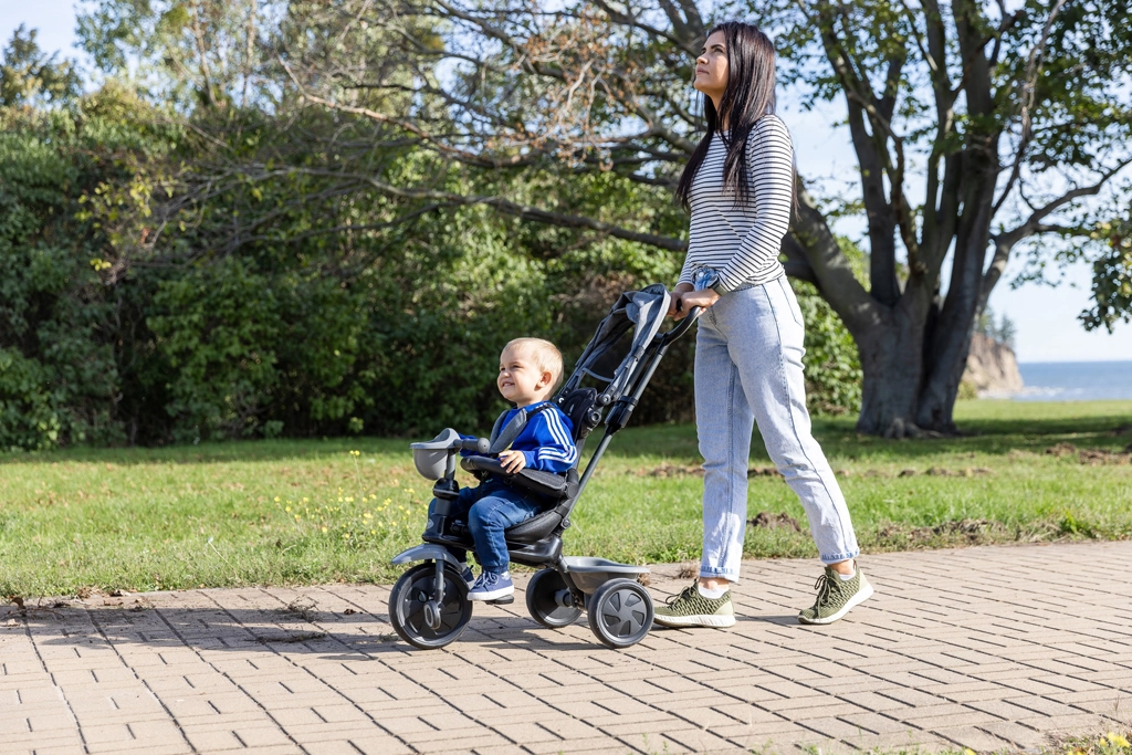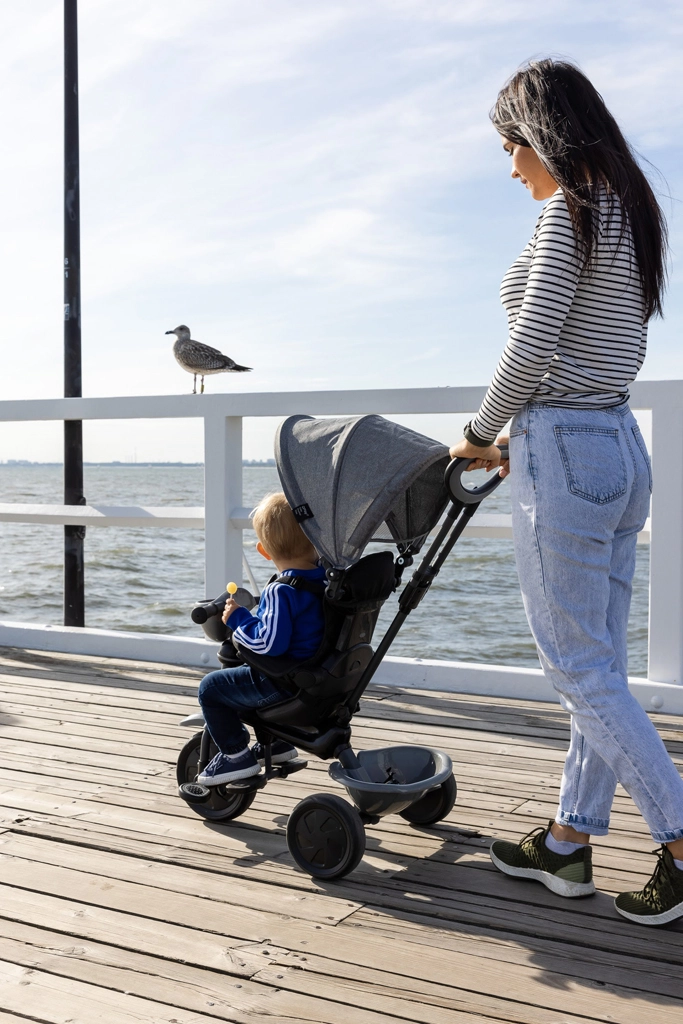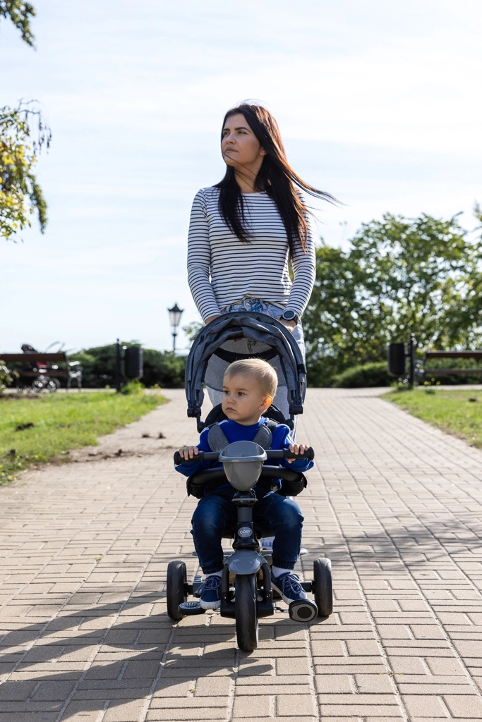 Díky odnímatelným a nastavitelným částem se tříkolka přizpůsobí růstu dítěte – od režimu s rodičovským vedením až po plně samostatnou jízdu.