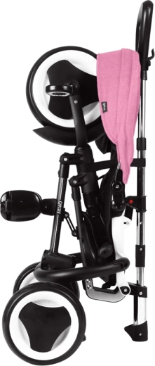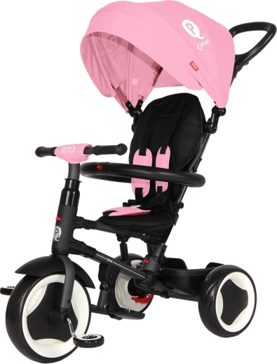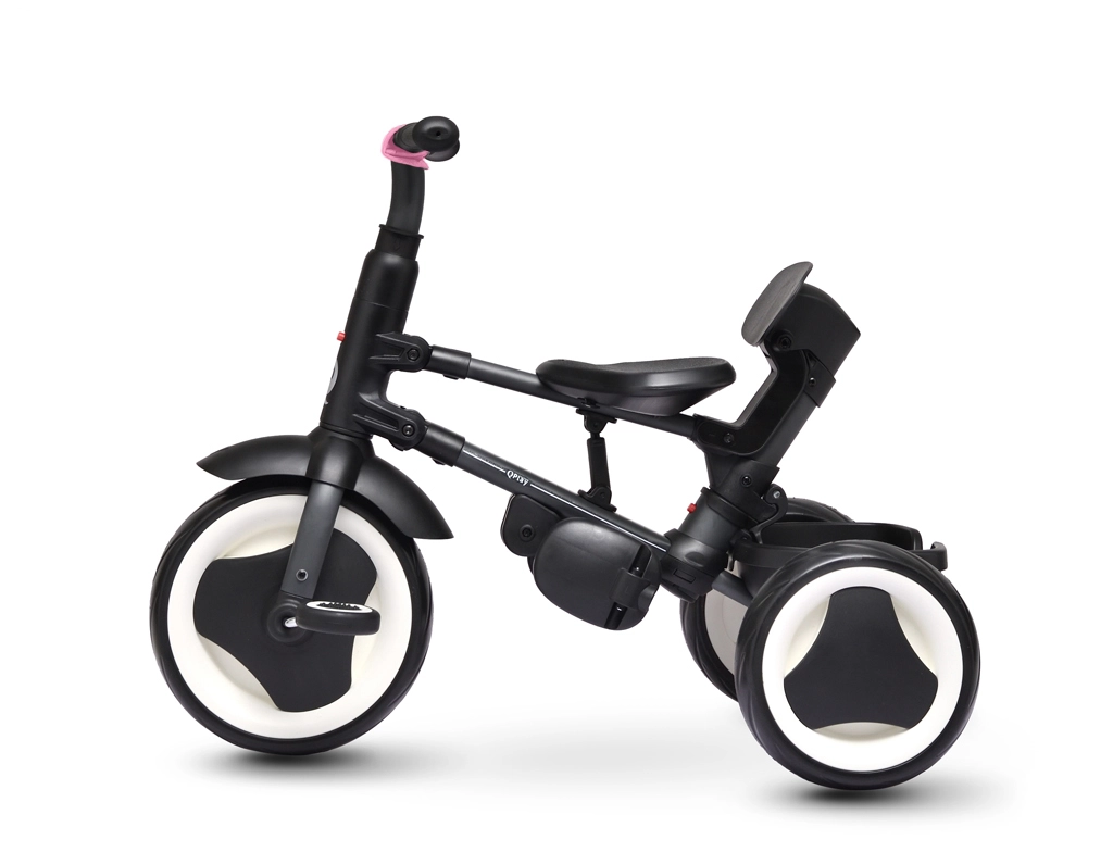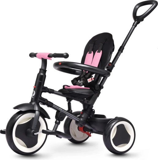 Tříkolka QPLAY Rito Pink je navržena pro maximální pohodlí dítěte i rodiče. Nabízí výškově nastavitelnou vodicí rukojeť, dvě polohy sklonu opěrky zad a prodyšné měkké sedadlo. Díky skládacímu systému ji rychle připravíte na cestu a stejně snadno uložíte – po složení ji lze pohodlně posouvat jako cestovní tašku.