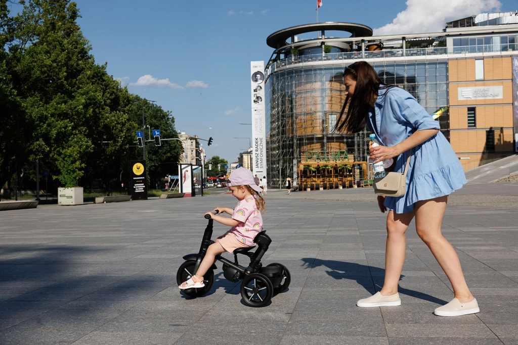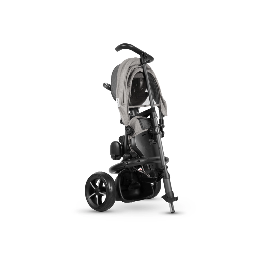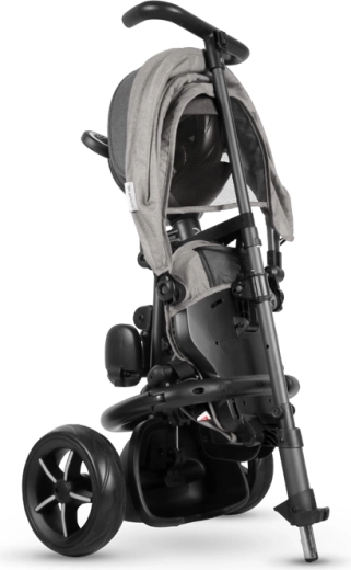 Složené během pár kliknutí bez nářadí. Po složení lze tříkolku jednoduše posouvat jako cestovní tašku – ideální do auta i MHD.