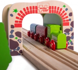 Tunel je vyroben z kvalitních a zodpovědně získaných přírodních materiálů a je kompatibilní s většinou dřevěných vláčkodrah na trhu. Splňuje současné evropské bezpečnostní normy, takže si děti mohou hrát bezpečně a rodiče v klidu.
