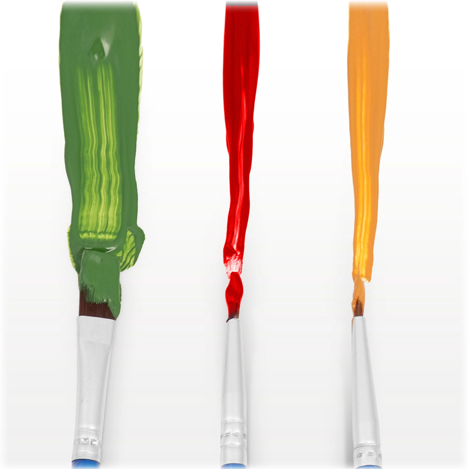 - Plátno s potiskem, barevná předloha A4, 30 barev, 3 štětce, háčky