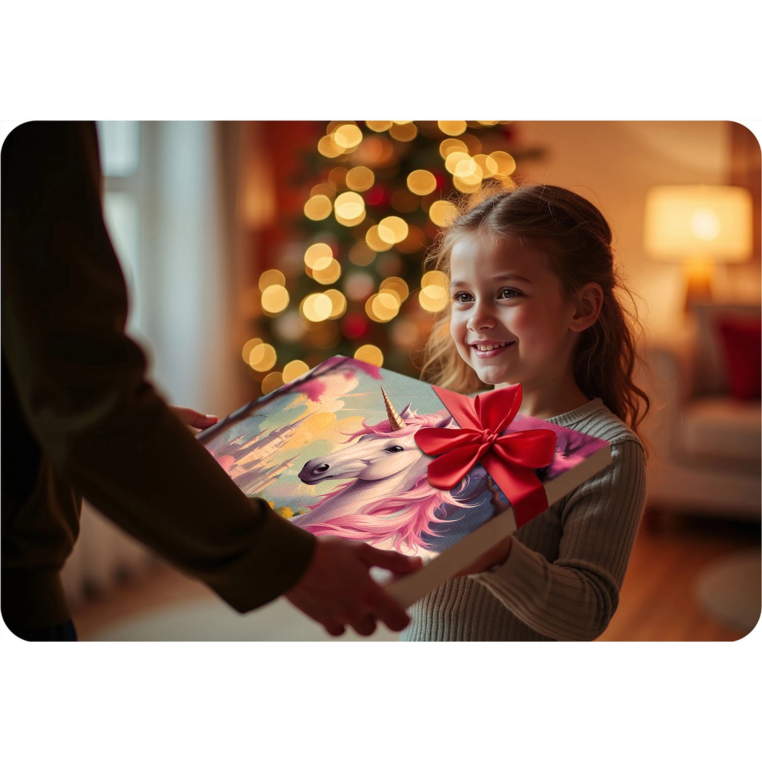 Motiv jednorožce potěší malé i velké. Hotový obraz je kouzelnou dekorací a samotný set je ideálním dárkem k Vánocům či narozeninám.
