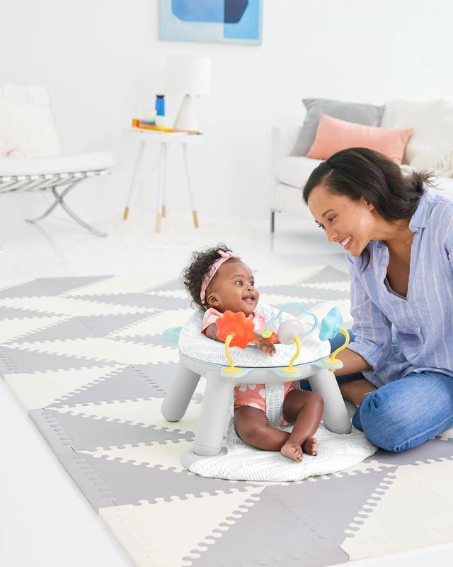 Vytvořte si bezpečný a krásný herní koutek s pěnovým puzzle SKIP HOP v šedo‑béžovém designu. Díky trojúhelníkovým dílkům a okrajům snadno poskládáte více rozměrů i vzorů, které se přizpůsobí prostoru vašeho dítěte. Měkká, odolná a na dotek příjemná EVA pěna poskytuje komfort při lezení, sezení i prvních krůčcích.