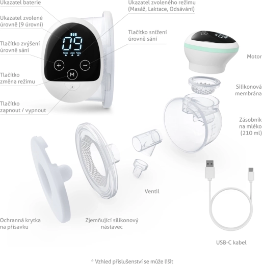 - Integrovaný zásobník 210 ml – snadné skladování mateřského mléka.