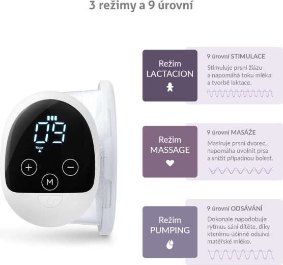 - 3 režimy a 9 úrovní intenzity – pro šetrnou stimulaci, uvolnění a efektivní odsávání.