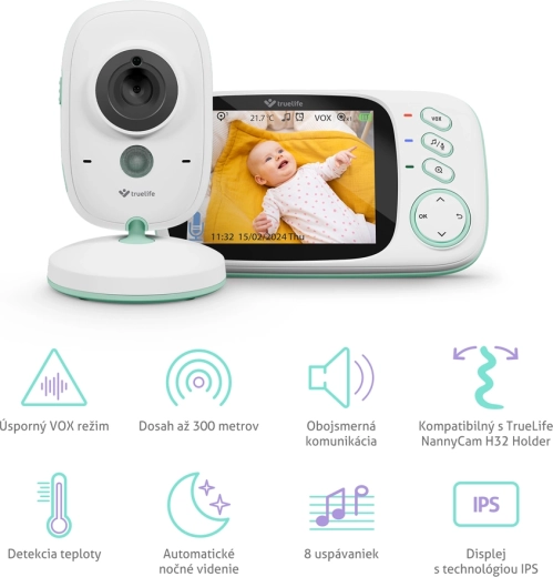 TrueLife NannyCam H32 Pro je spolehlivá digitální videochůvička, která vám umožní dohlížet na dítě s křišťálově čistým obrazem na 3,2″ IPS displeji. Když se setmí, aktivuje se automatické noční vidění s dosahem až 5 m. Díky obousměrné komunikaci můžete miminko uklidnit vlastním hlasem, případně pustit jednu z 8 přednastavených ukolébavek.