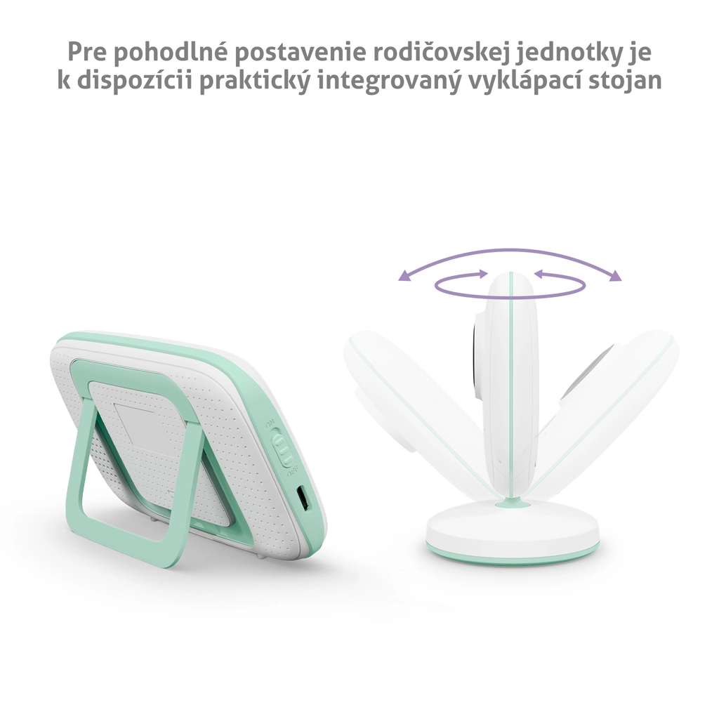 - Detekce teploty, automatické noční vidění, ukolébavky, režim VOX, obousměrná komunikace, připomínky krmení, ukazatel ztráty dosahu a stavu baterie, spárování až 2 kamer