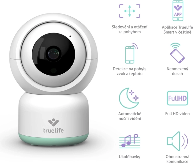Mějte své miminko pod dohledem odkudkoliv díky chůvičce TrueLife NannyCam R3 Smart s Full HD 1080p obrazem, neomezeným dosahem přes internet a chytrými funkcemi. Nabízí otočnou kameru se sledováním pohybu, noční vidění, detekci zvuku, pohybu a teploty, obousměrnou komunikaci i ukolébavky. Snadné ovládání v aplikaci TrueLife Smart v češtině, bezpečné šifrování a možnost 24/7 nahrávání na microSD.