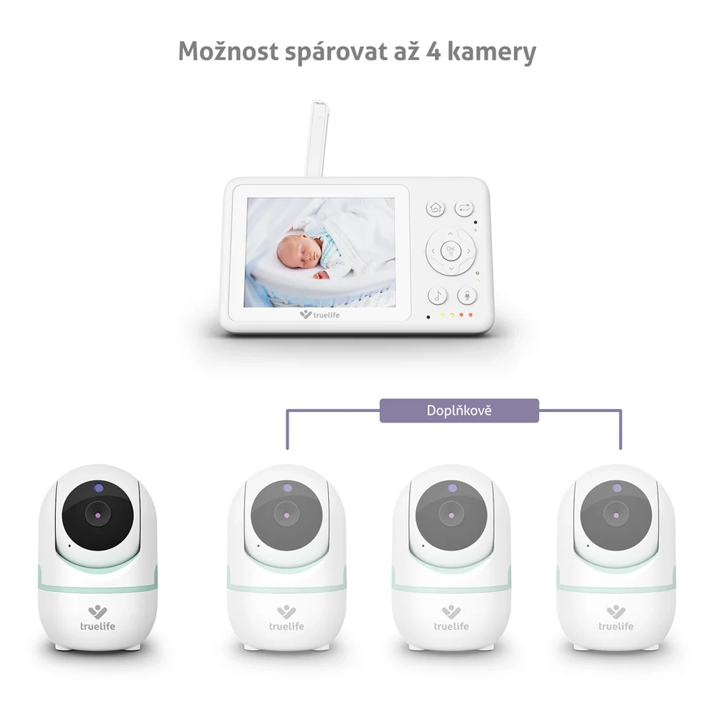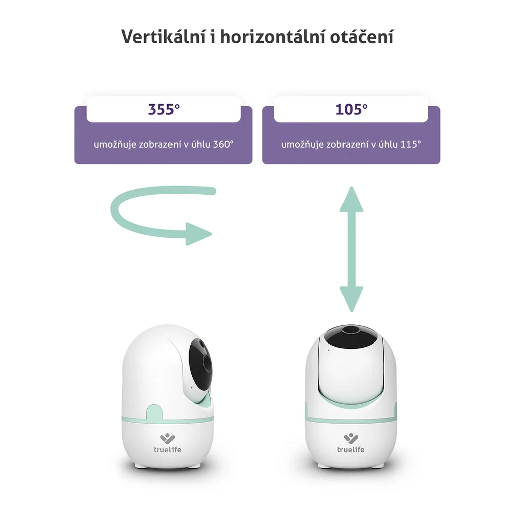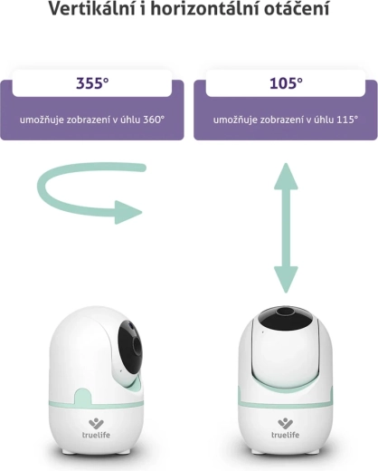 Buďte v klidu, i když nejste v pokoji. TrueLife NannyCam R4i nabízí horizontální i vertikální otáčení kamery pro dokonalý přehled v každém rohu. Na 3,2" IPS LCD displeji uvidíte čistý obraz i ve tmě díky automatickému nočnímu vidění. Obousměrná komunikace vám umožní miminko okamžitě utišit vaším hlasem, nebo zvolit jednu z 5 přednastavených ukolébavek.