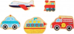 - 5 různých puzzle – rozmanitost motivů dopravních prostředků.