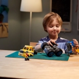 Stavebnice je ideální pro rozvoj technického myšlení a koordinace ruka-oko. Díky přiložené figurce, samolepkám a jasnému návodu je stavění intuitivní a zábavné – a hotové vozy jsou připravené na akční městské mise.