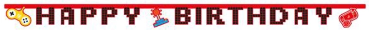 Tato narozeninová girlanda s herním motivem je perfektní volbou pro každého milovníka videoher. Díky délce 2 metry snadno ozdobí stůl, stěnu nebo fotokoutek a zvýrazní téma vaší párty.
