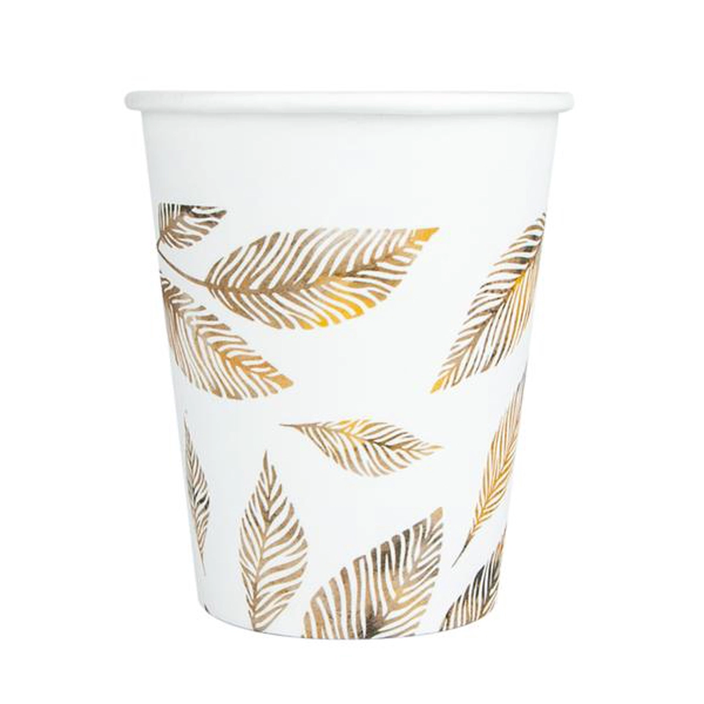 Elegantní papírové kelímky s jemným motivem větviček v šedé barvě jsou ideální pro oslavy, svatby i každodenní použití. Nabízejí praktický objem 200 ml, jsou lehké a odolné a skvěle ladí s moderním stolováním. Balení obsahuje 8 kusů.