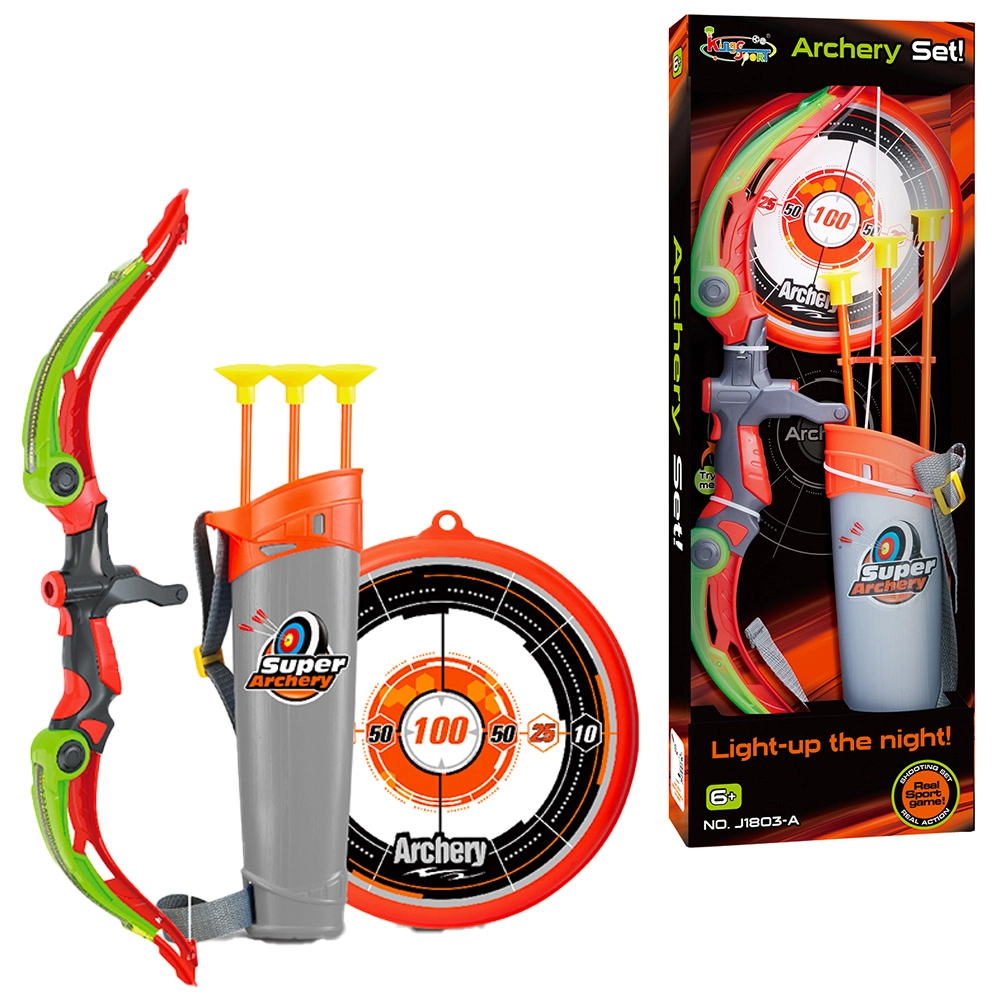 Součástí balení je vše potřebné pro okamžitou hru: luk, několik svítících šípů a terč. Odolné materiály zajišťují dlouhou životnost a bezpečnost při hraní, zatímco pestré barvy a atraktivní design nadchnou každého malého dobrodruha.