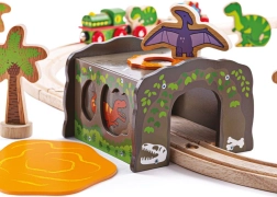 Oživte svět své vláčkodráhy dobrodružstvím z pravěku. Dinosauří tunel t. rex s efektními ilustracemi dinosaurů vtáhne děti do hry plné fantazie – projíždějte "nebezpečnou" jeskyní, vyhýbejte se strážícím tvorům a vytvářejte vlastní příběhy.