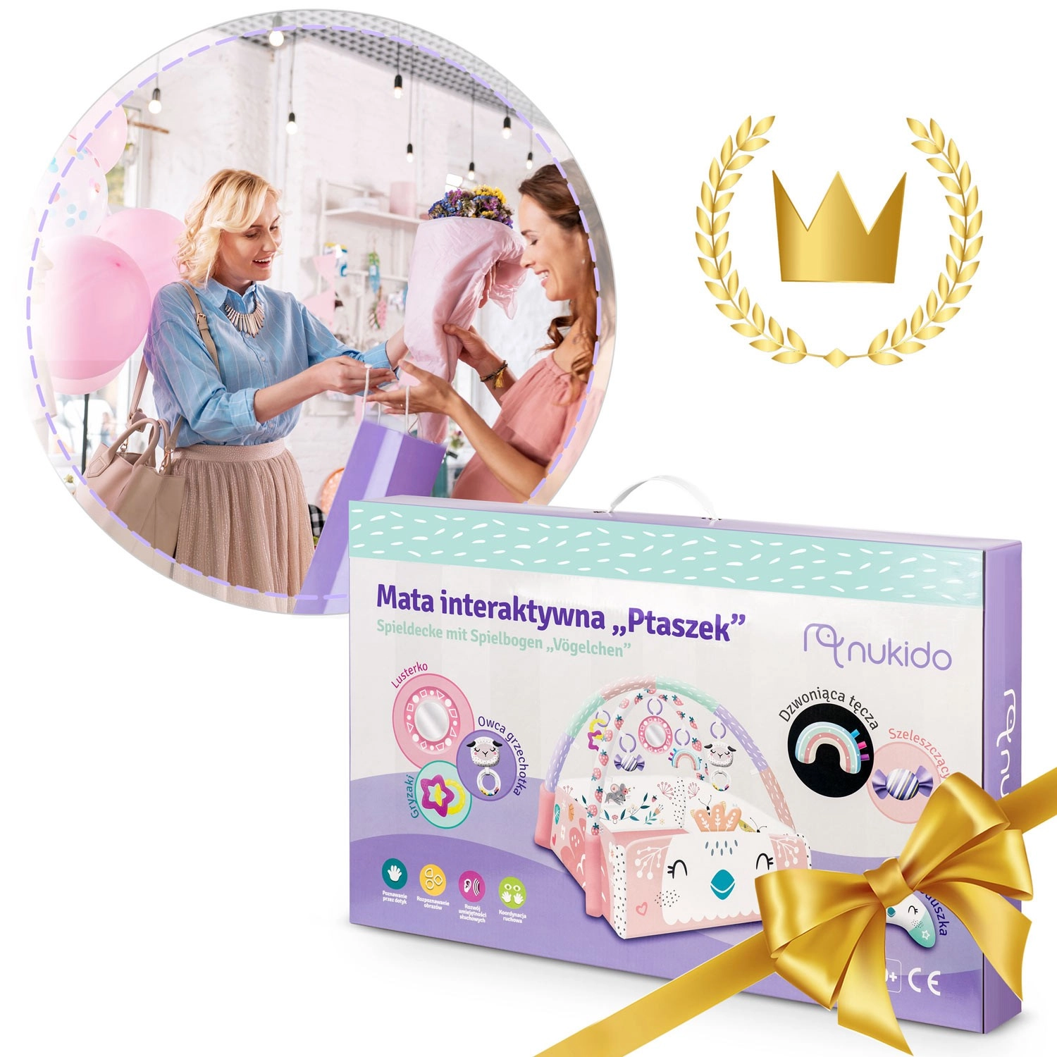 Velká interaktivní hrací deka NUKIDO 3v1 nabízí pro miminko od prvních dnů. Díky dvěma kříženým obloukům a 7 multifunkčním hračkám podporuje smyslový rozvoj i koordinaci. Součástí je GRATIS polštářek pro tummy time, zvedací bočnice a snadno omyvatelný, dobře izolující spodní díl. Pastelové barvy a originální design potěší rodiče i děti. Deka splňuje přísné evropské normy bezpečnosti EN71 a certifikaci CE.