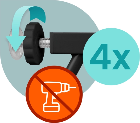 - Bez vrtání: 4 rozpěrné body drží pevně bez poškození stěn.