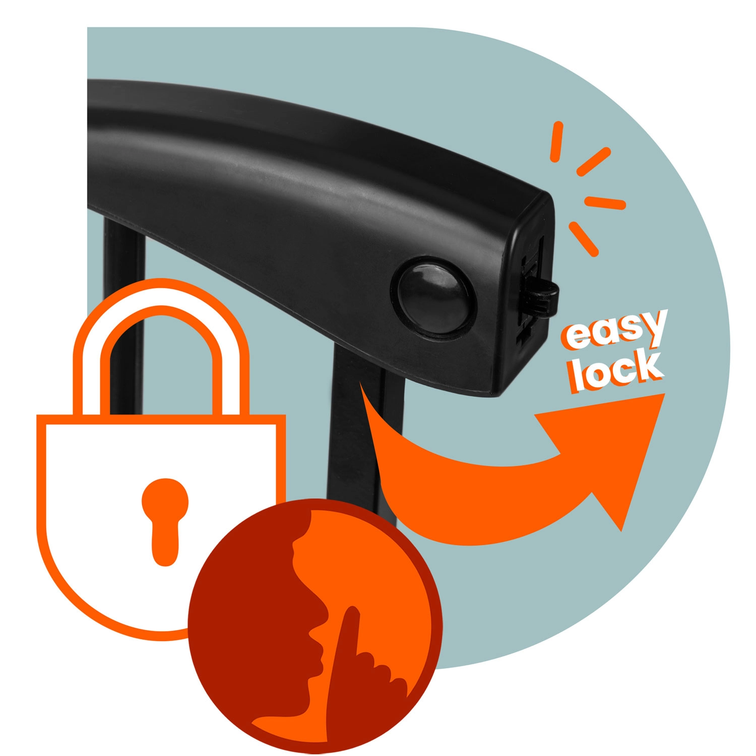 Dvojité jištění brání samovolnému otevření dítětem. Otevírání i zavírání jednou rukou, tiché dovírání a možnost aretace v poloze 90°.