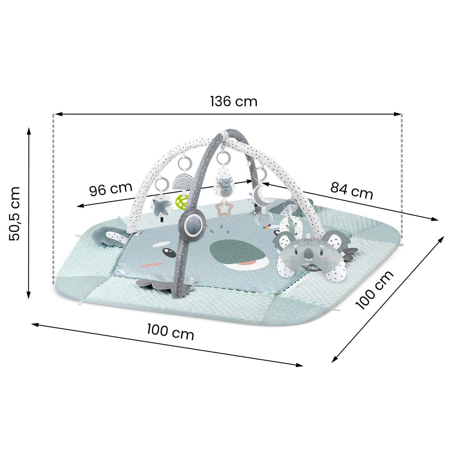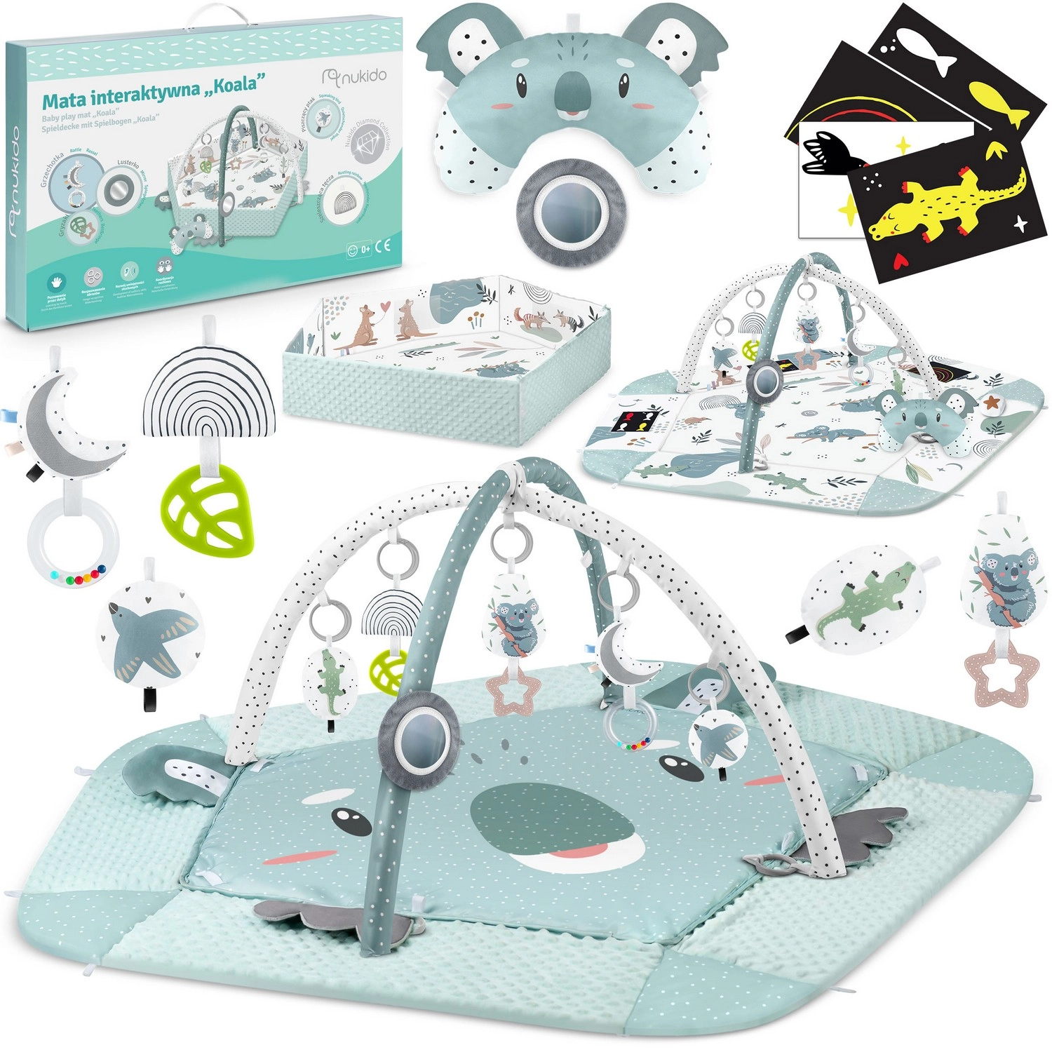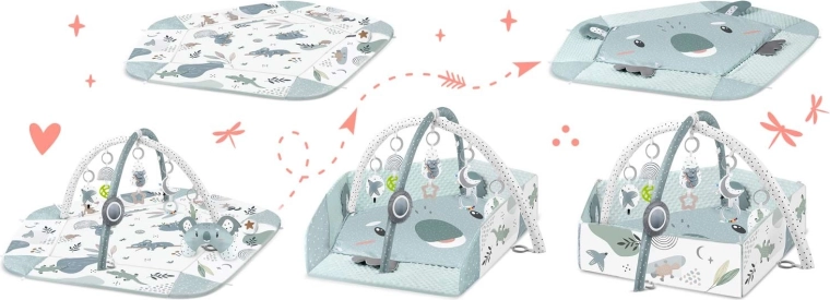 Objevte prostornou hrací deku pro miminka s motivem koaly, která propojuje bezpečnou zónu na hraní a podporu motorického vývoje od prvních dnů. Deka je oboustranná, má zvedací bočnice, rychlé skládání a až 7 multifunkčních hraček včetně polštářku pro pasení koníčků a speciální “A‑KU‑KU” peekaboo podložky. Příjemný materiál minky je měkký a snadno omyvatelný. Splňuje přísné evropské bezpečnostní normy CE, EN71‑1/2/3.