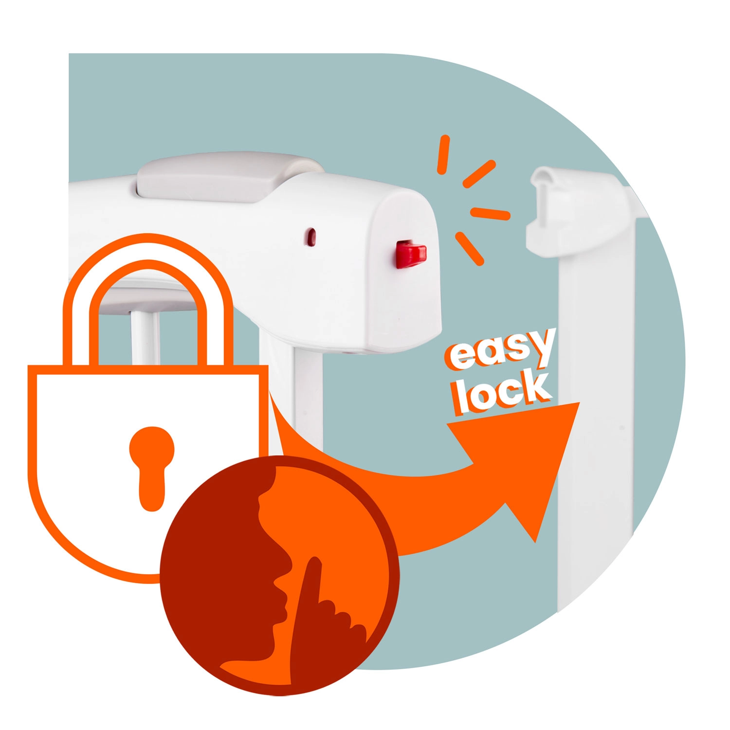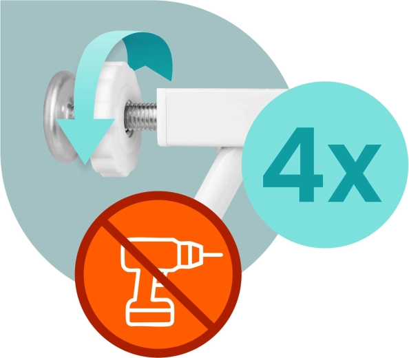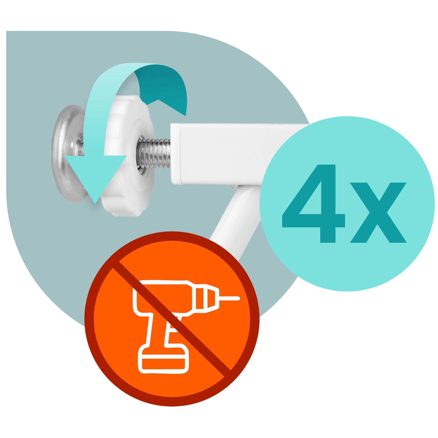 Rozpěrné uchycení s bočními podložkami umožní instalaci bez nářadí a bez poškození zárubní či stěn. Demontáž je stejně rychlá.