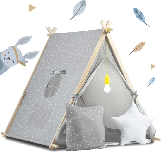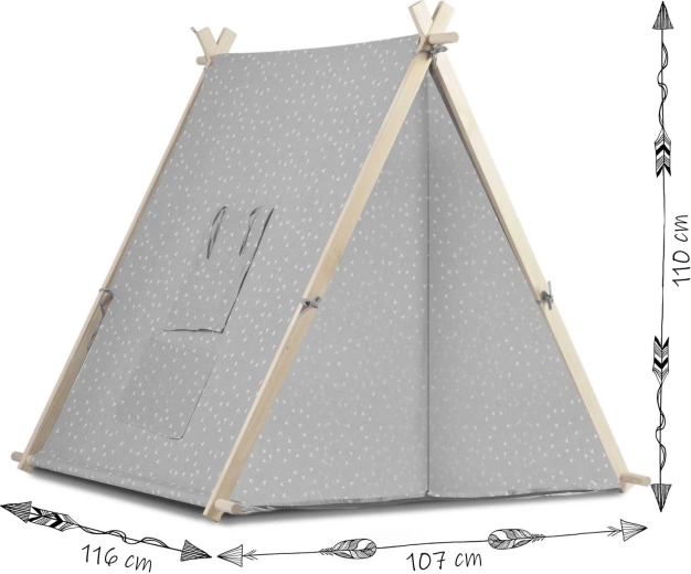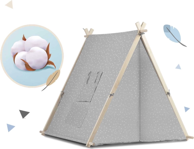 Teepee je ušité z prémiové bavlny pro skvělou prodyšnost a příjemný dotyk. Pevný rám z přírodního dřeva dodává stanu stabilitu na koberci i tvrdší podlaze.