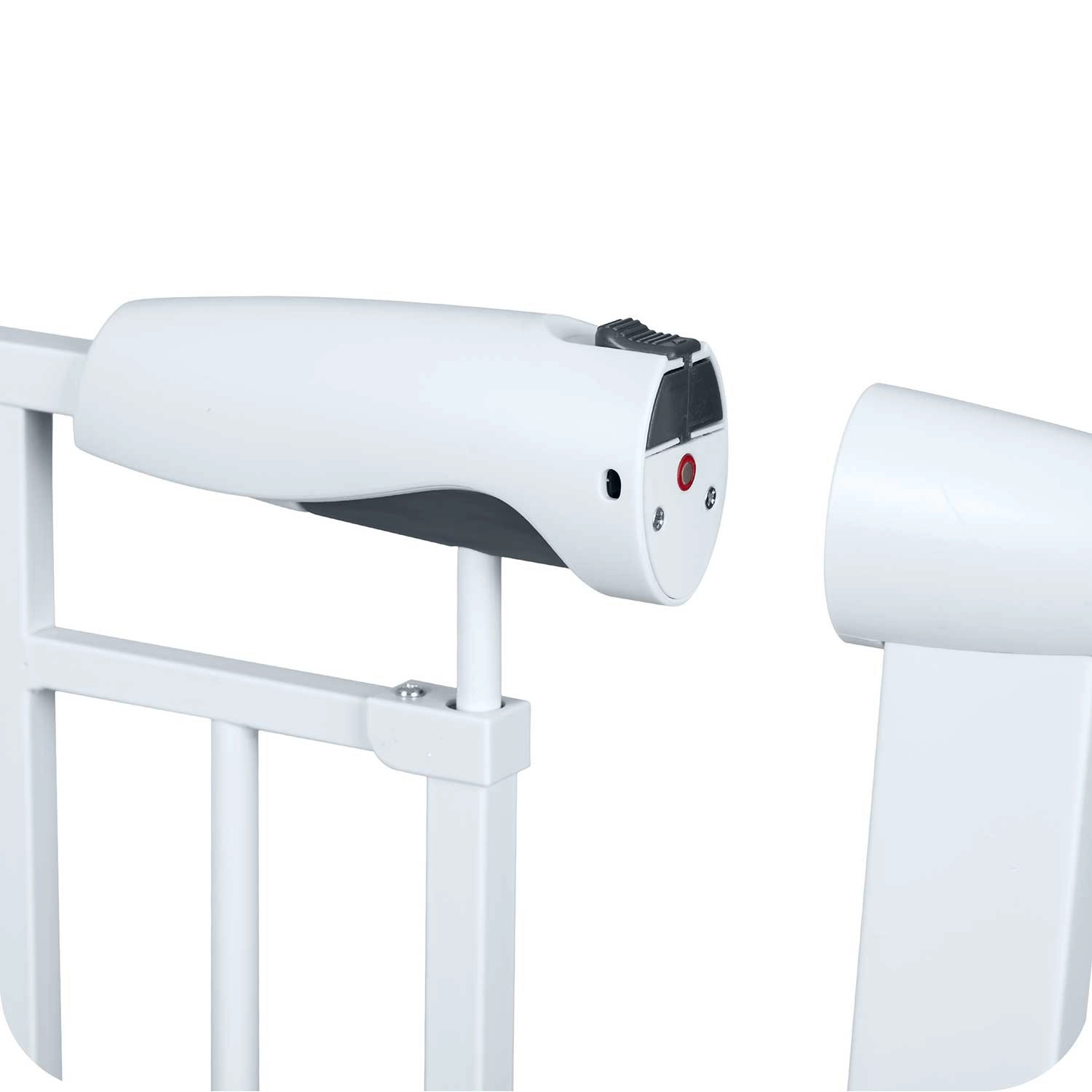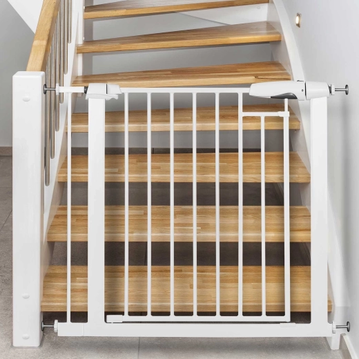 Bezpečnostní branka NUKIDO chrání děti i domácí mazlíčky před vstupem na schody či do nebezpečných míst. Montuje se bez vrtání pomocí rozporového systému, má kovovou konstrukci v bílé barvě a magnetické zavírání s možností otevření jednou rukou. Díky nastavitelnému rozsahu 76–104 cm skvěle padne do dveří i průchodů.