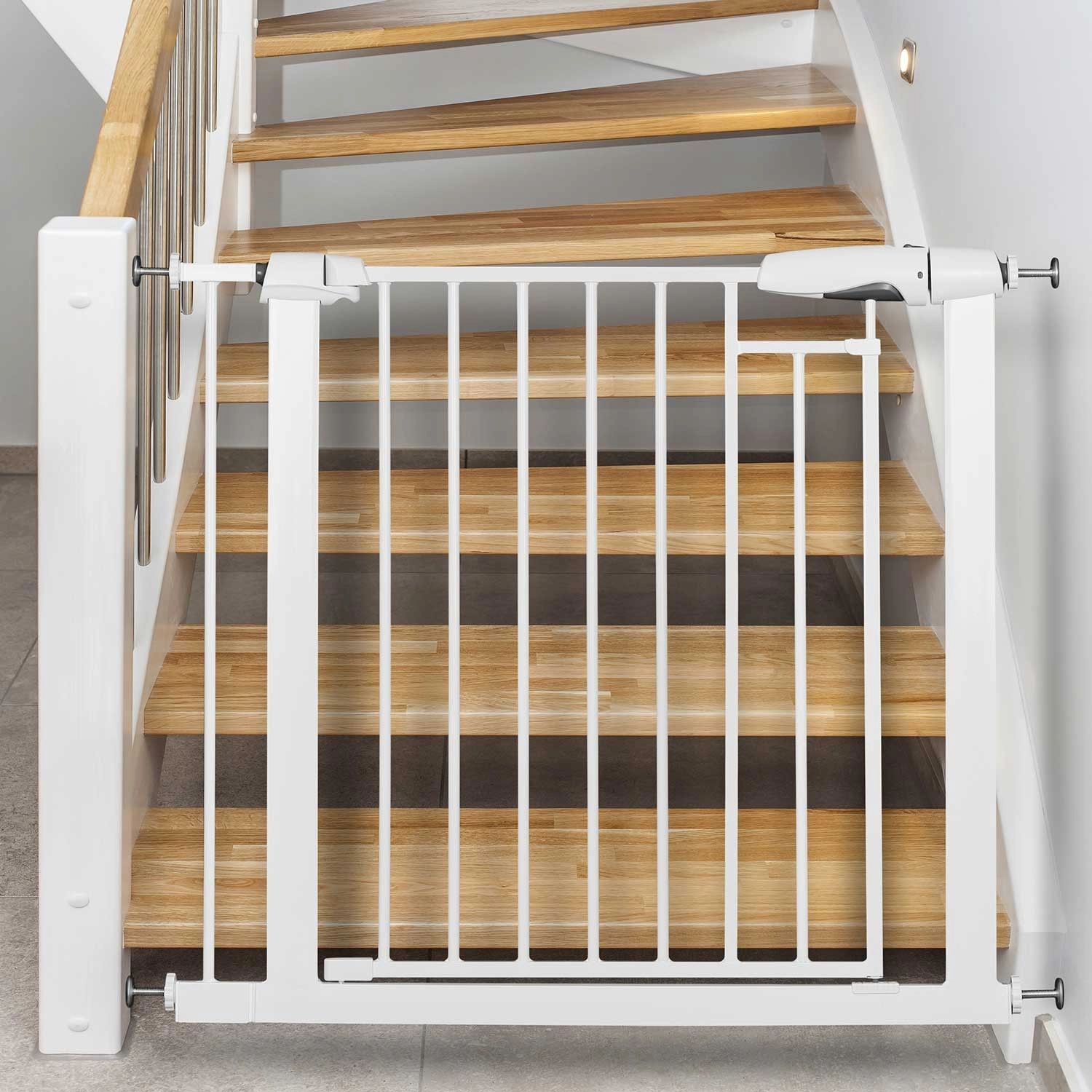 Bezpečnostní zábrana NUKIDO je spolehlivé řešení do domácnosti se zvědavými dětmi. Robustní ocelová konstrukce v elegantní bílé barvě zapadne do většiny interiérů. Tlaková (rozporová) montáž zajistí pevné ukotvení bez poškození zdí a zárubní a zvládnete ji bez nářadí.