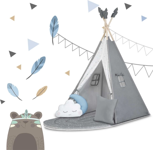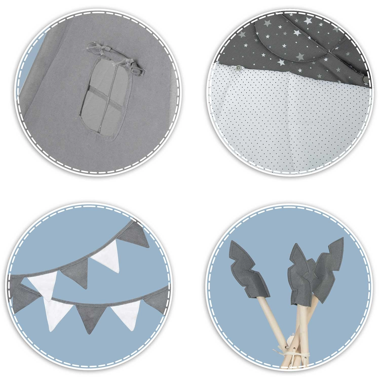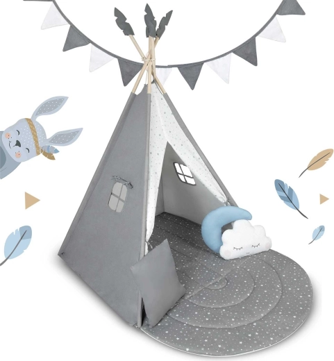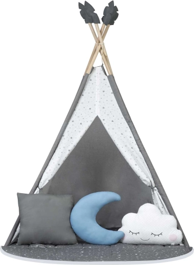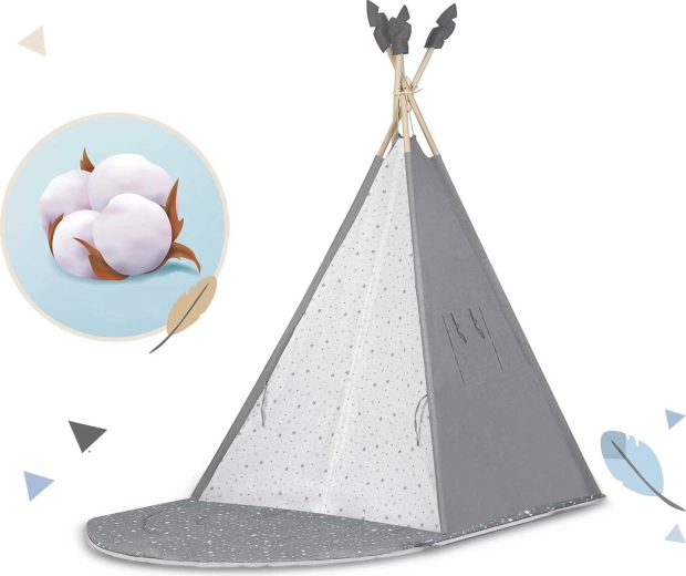 Tipi NUKIDO je navržené s ohledem na potřeby dětí – z jemné a odolné směsi s prémiovou bavlnou pro skvělou prodyšnost a pohodlí. Vyšší gramáž látky 175 g/m² zajišťuje měkkost a výdrž, takže stan bez potíží zvládne každodenní dobrodružství. Harmonické šedé tóny se vzorem hvězd krásně zapadnou do interiéru a podpoří smyslový rozvoj dítěte.