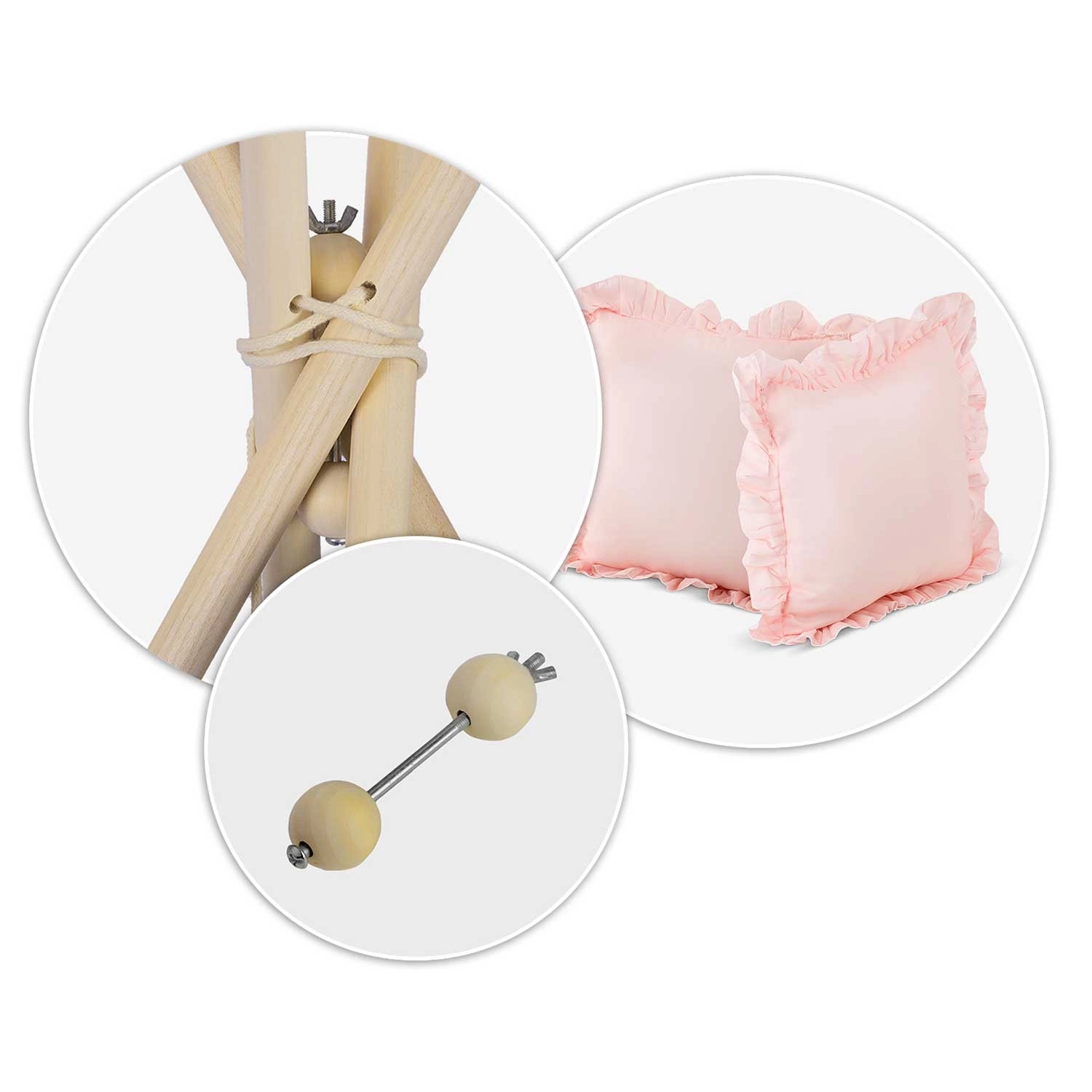 Girlanda, stabilizátor, 4 dřevěné tyče, tkanice, izolační podložka s protiskluzem, 2 polštáře