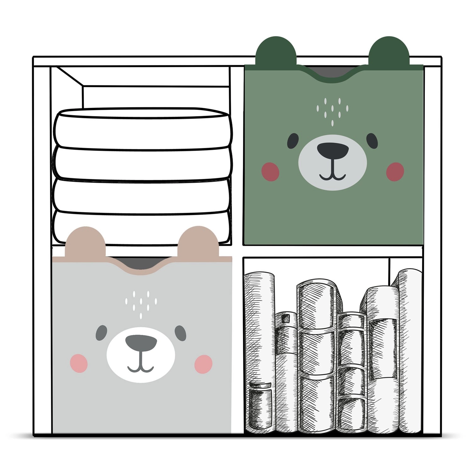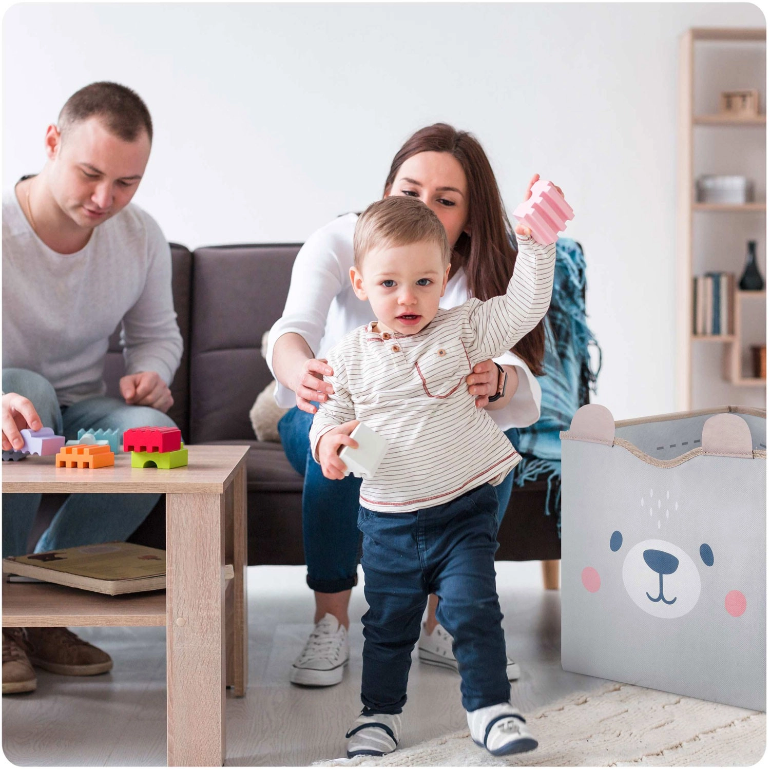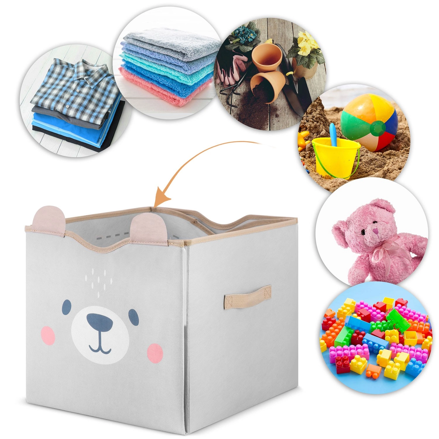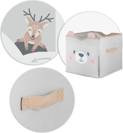 Funkční detaily potěší rodiče i děti: pevné suché zipy udrží tvar koše, boční ucha usnadní přenášení a snadno omyvatelný povrch zajistí rychlou údržbu. Díky kompatibilním rozměrům skvěle padne do běžných polic a regálů.