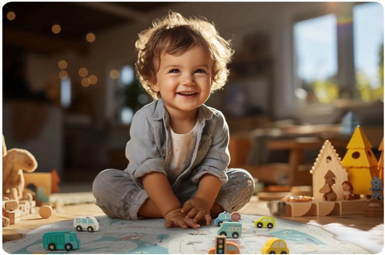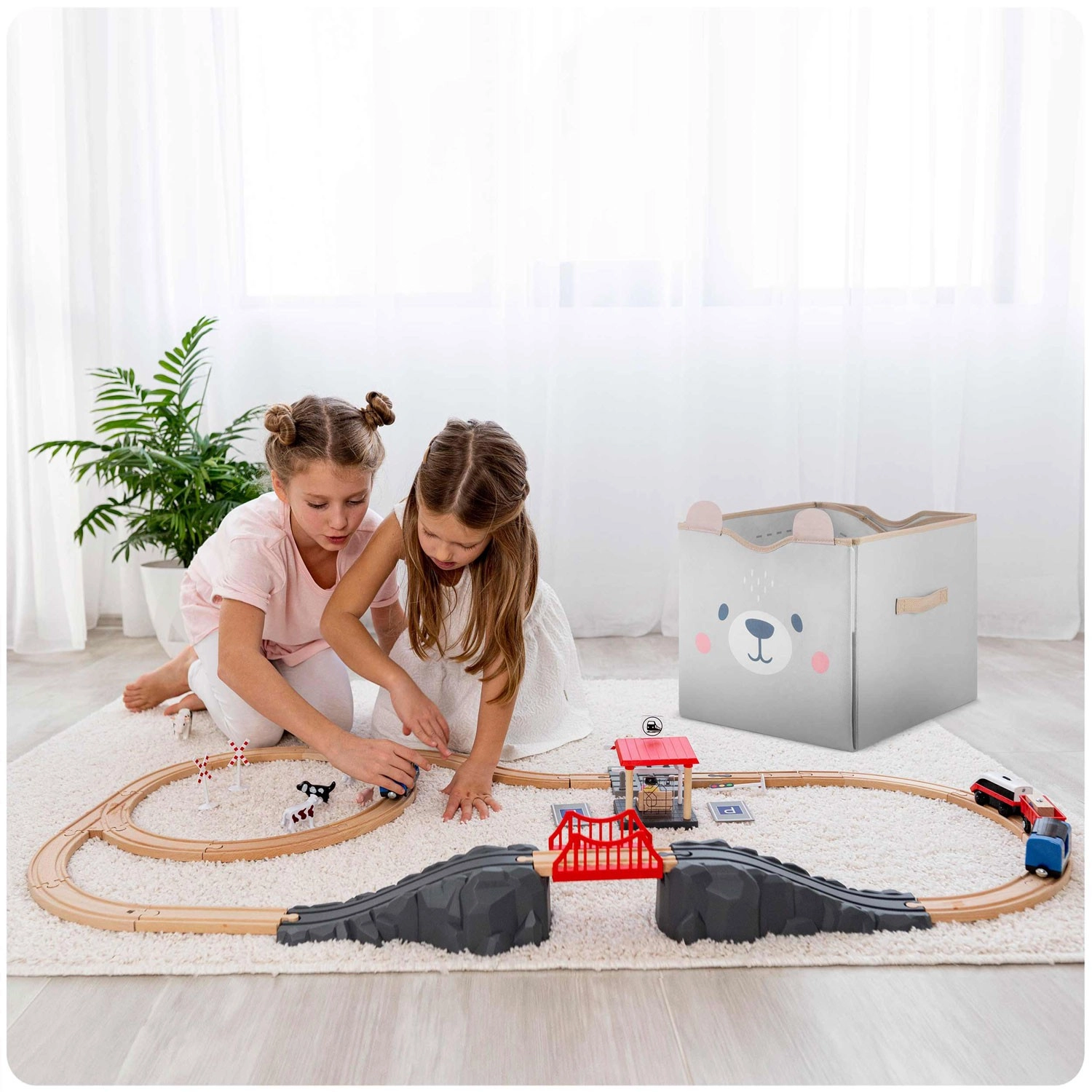 Přeměňte prostorný koš na hračky jedním tahem na hrací podložku s cestami. Děti si hrají, vy šetříte místo i čas.